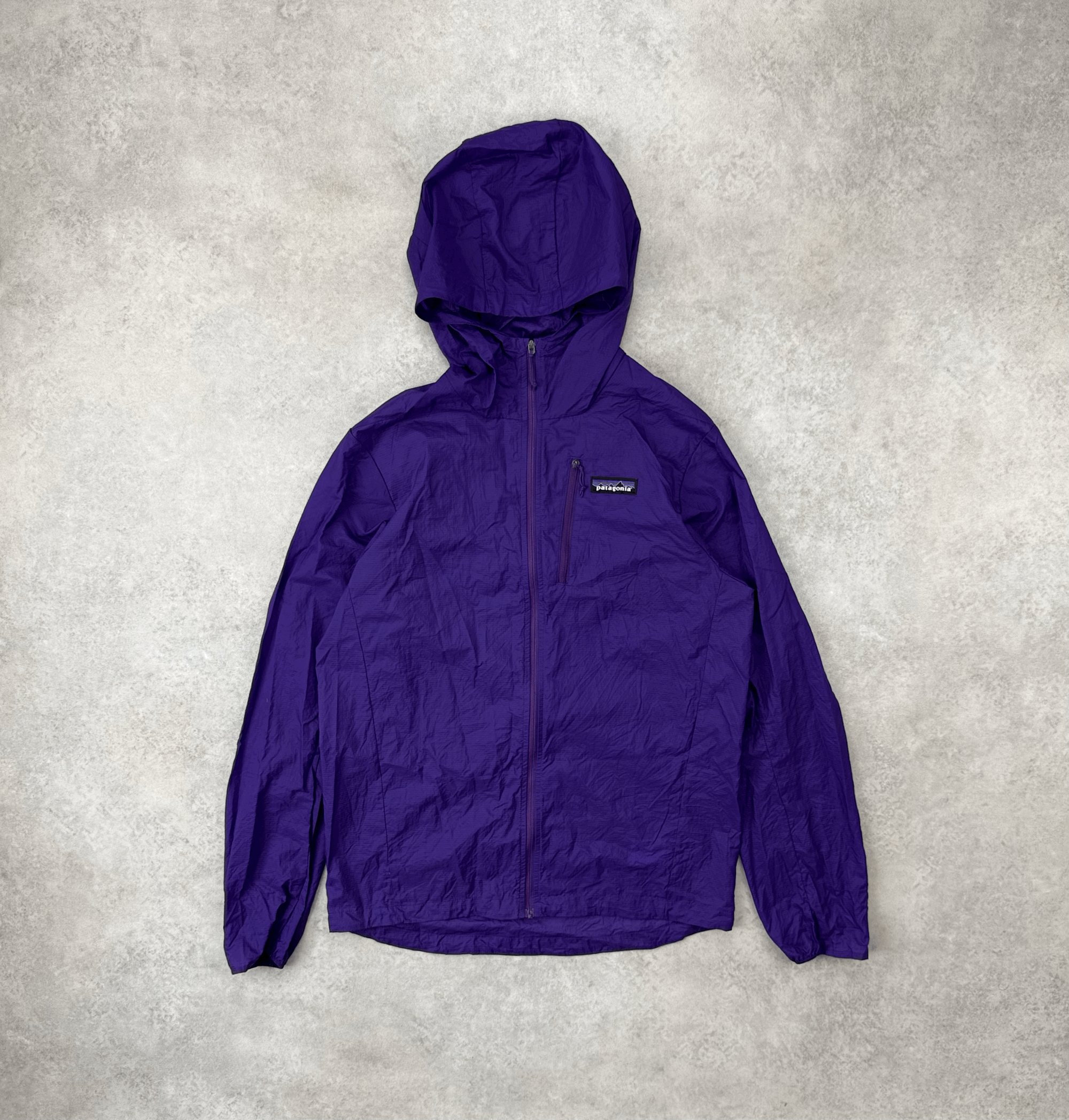 - Packs into small pouch via chest pocket